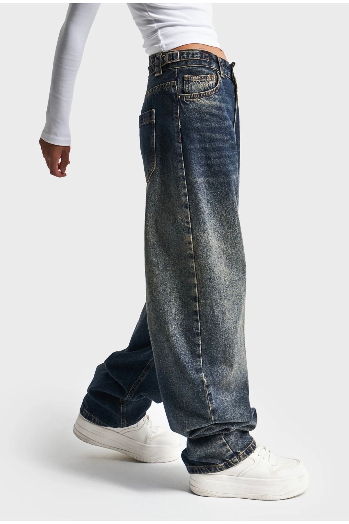 Beli Kemer Detaylı Jean Pantolon Yeşil Eskitme - 40