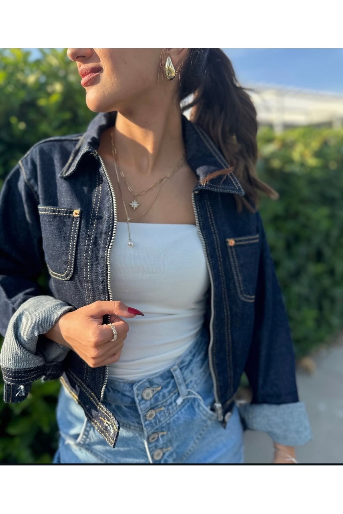 Crop Premium jean ceket Lacivert - M ve daha pek çok Ceket Miraca Online'da.