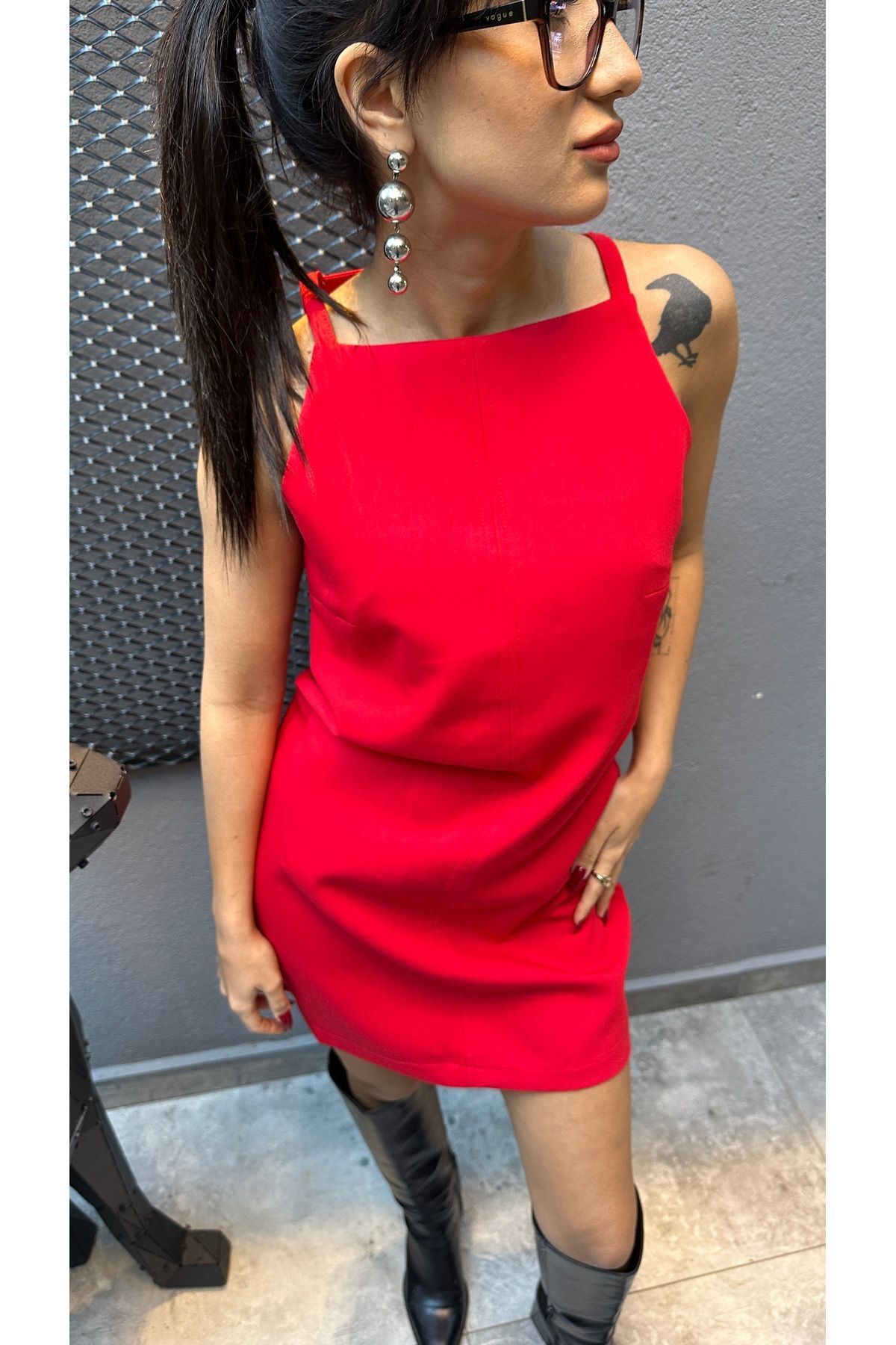 Kırmızı Halter Kesim Davet Elbisesi Kırmızı - S