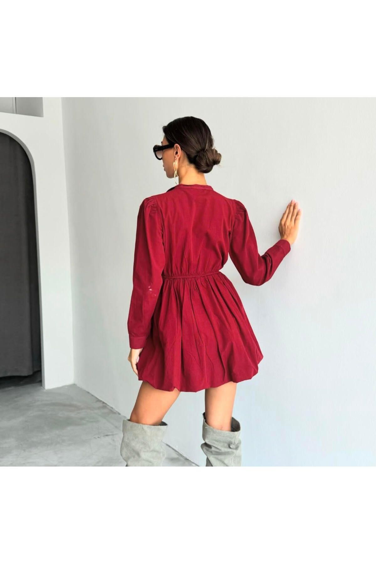 Pamuklu Mini Elbise bordo - 36