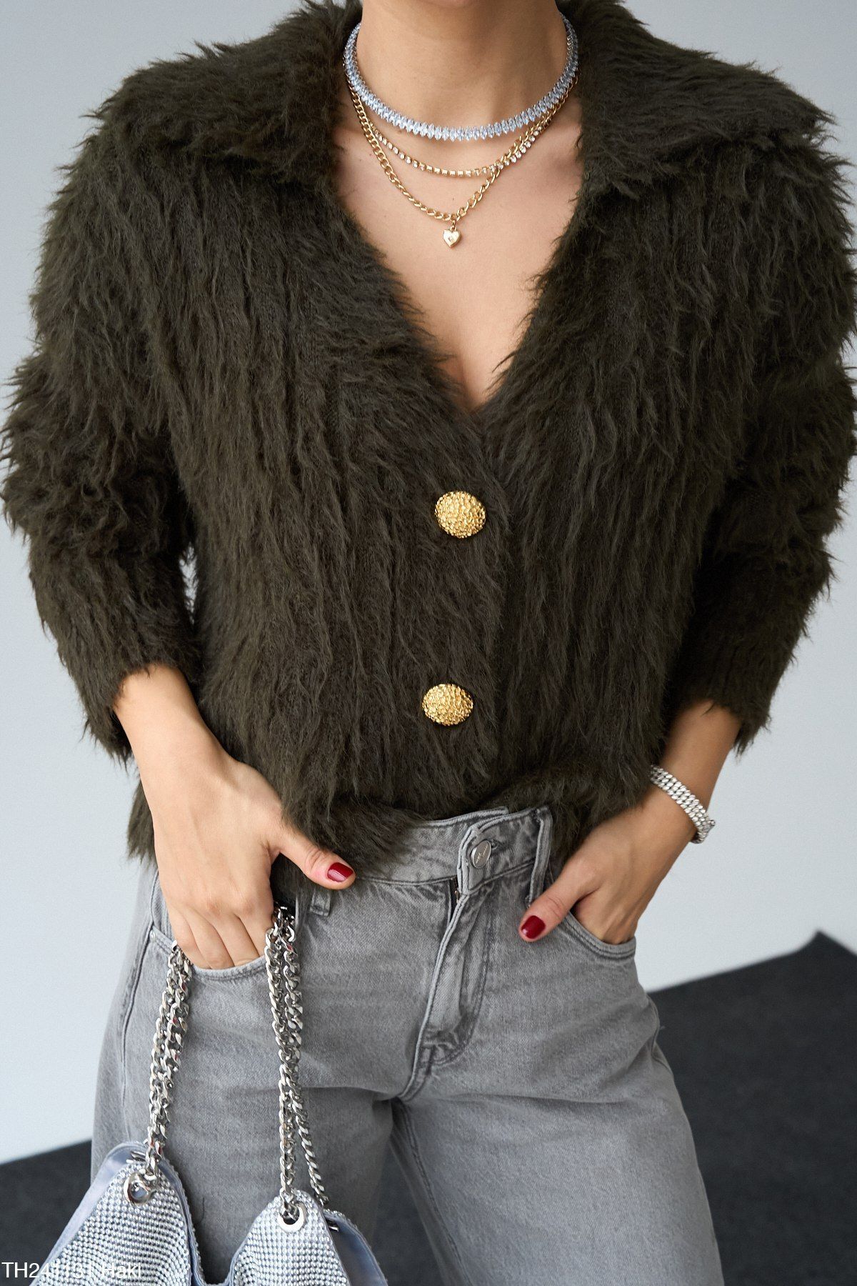 Qu Tüylü Hırka Haki - Standart ve daha pek çok Hırka Miraca Online'da.