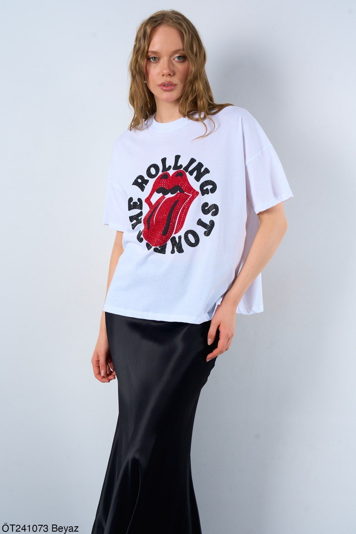 ROLLİNG KİSS T-SHİRT BEYAZ - M