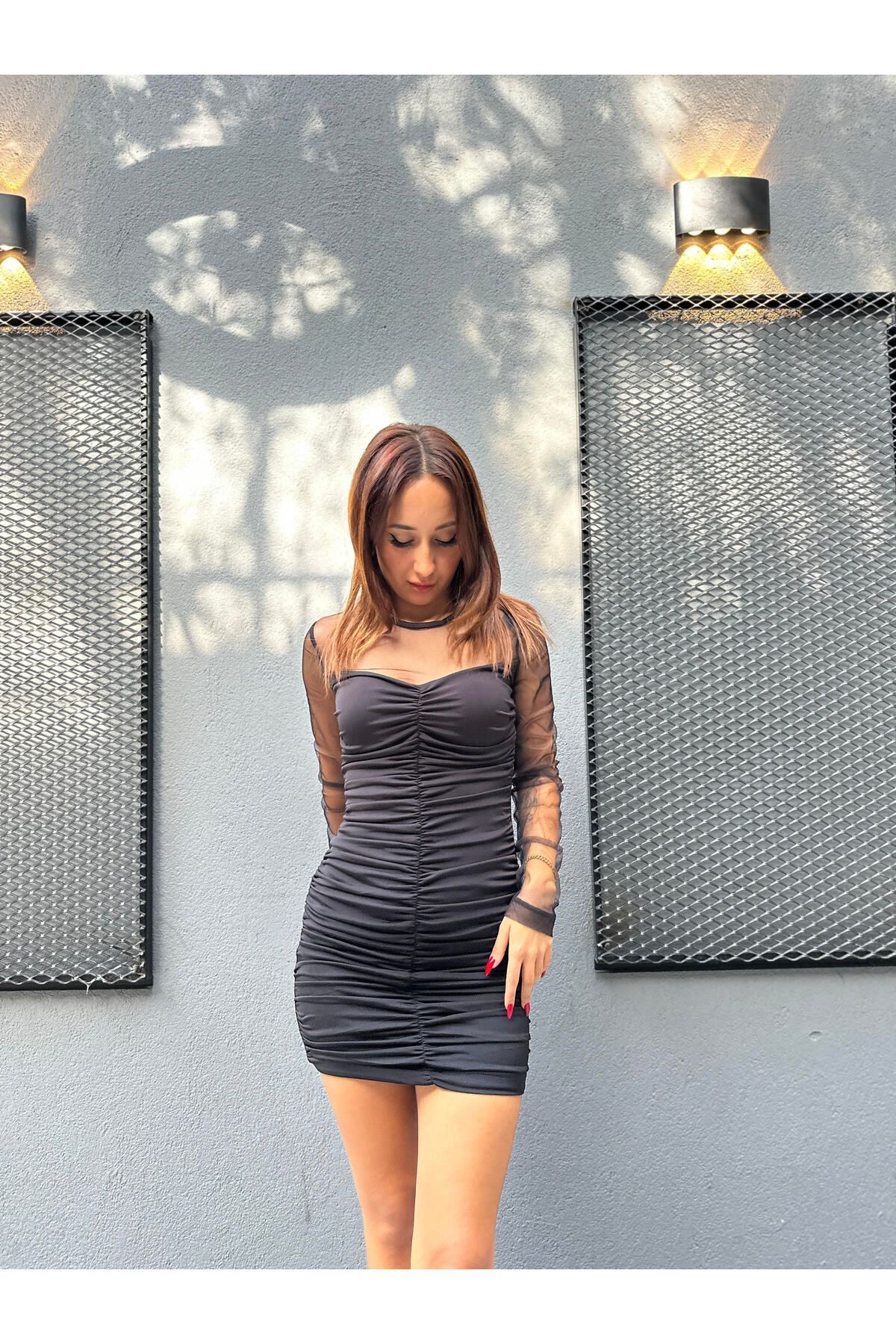 Vücudu Saran Mini Davet Elbisesi siyah - S